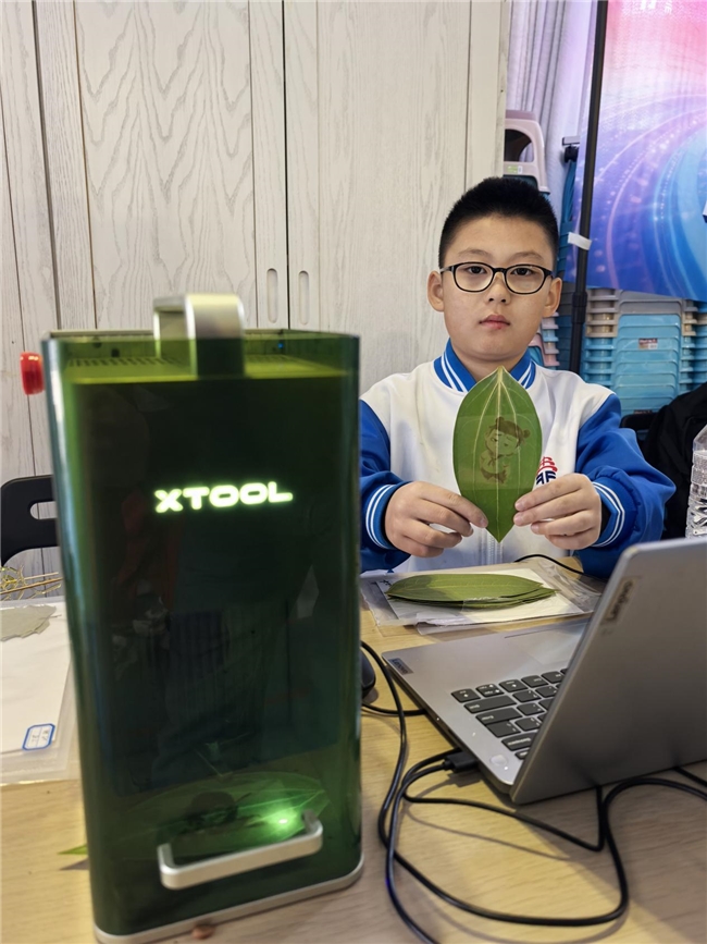 这一设计初衷在学生的创意中得到了生动回响。少先队辅导员兼科学教师苏厚泽分享了一个令他印象深刻的情景:有学生用AI设计了一个融合剪纸风格的航天图标,并尝试用激光叶雕技术制作出来。