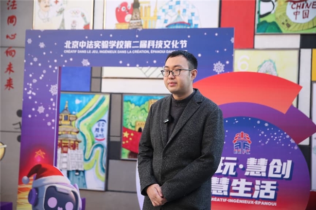 “‘慧’字有双重内涵。”北京中法实验学校校长孙继刚在开幕式后接受采访时解释道,“一是‘智能’(Intelligence),我们引入了AI、机器人、VR等技术设备;二是‘智慧’(Wisdom),体现在文化传承、动手创造和跨学科融合中。”