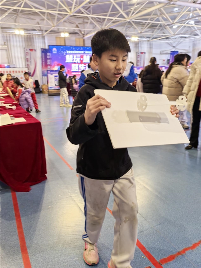 在“新年创想·社团闪耀”成果展示区,AIGC智能设计、机器人、航空模型、剪纸、泥塑等八个学生社团各显神通。社团成员们化身解说员和技术指导员,向参观的师生、家长详细介绍自己的作品与理念。