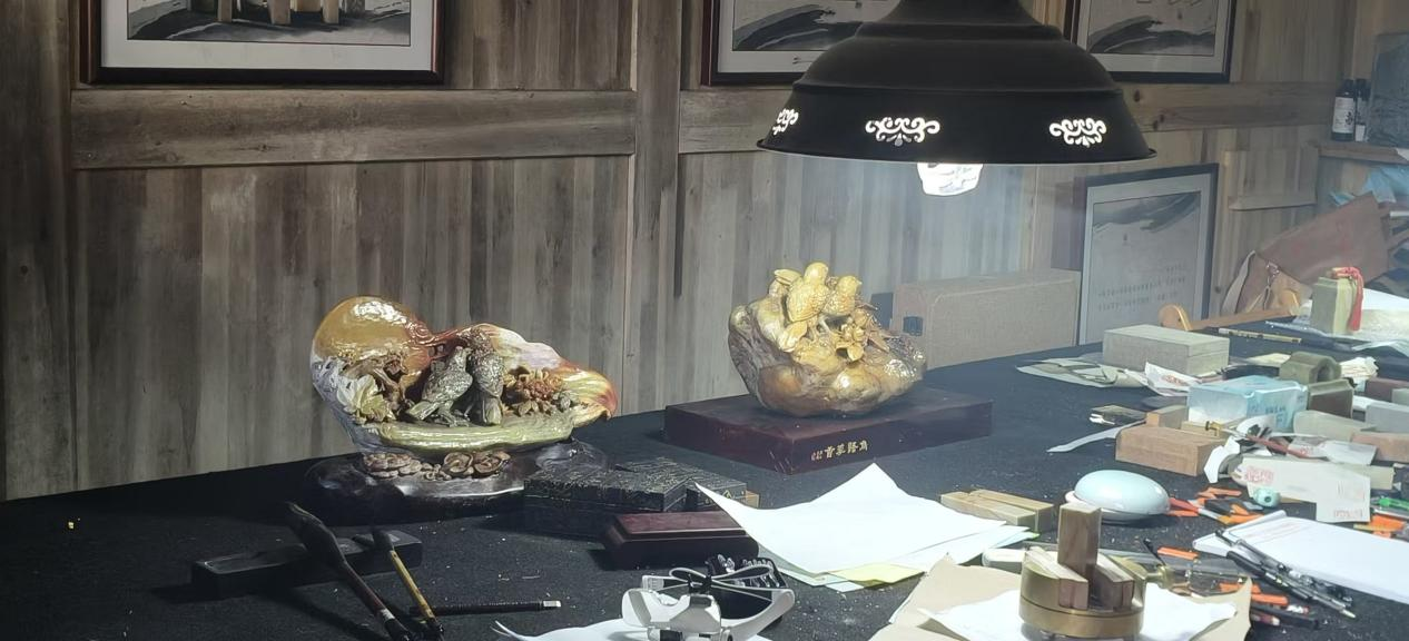 王永贵大师不仅展示了荣获多项国家级金奖的匠心之作,更娓娓道来个人从艺经历与泰顺石行业的起伏变迁。“守住手艺很重要,但让手艺活下去、火起来,让乡亲们靠它过上好日子,同样重要。”大师的话语质朴而深刻。他谈及创作中的坚守,也坦诚行业发展面临的挑战:如何提升品牌价值?如何拓宽市场渠道?如何吸引年轻人加入?这场对话让队员们意识到,非遗的传承与振兴,必须与产业发展、百姓增收紧密结合,这正是乡村振兴课题中关于“产业兴旺”的鲜活注脚。